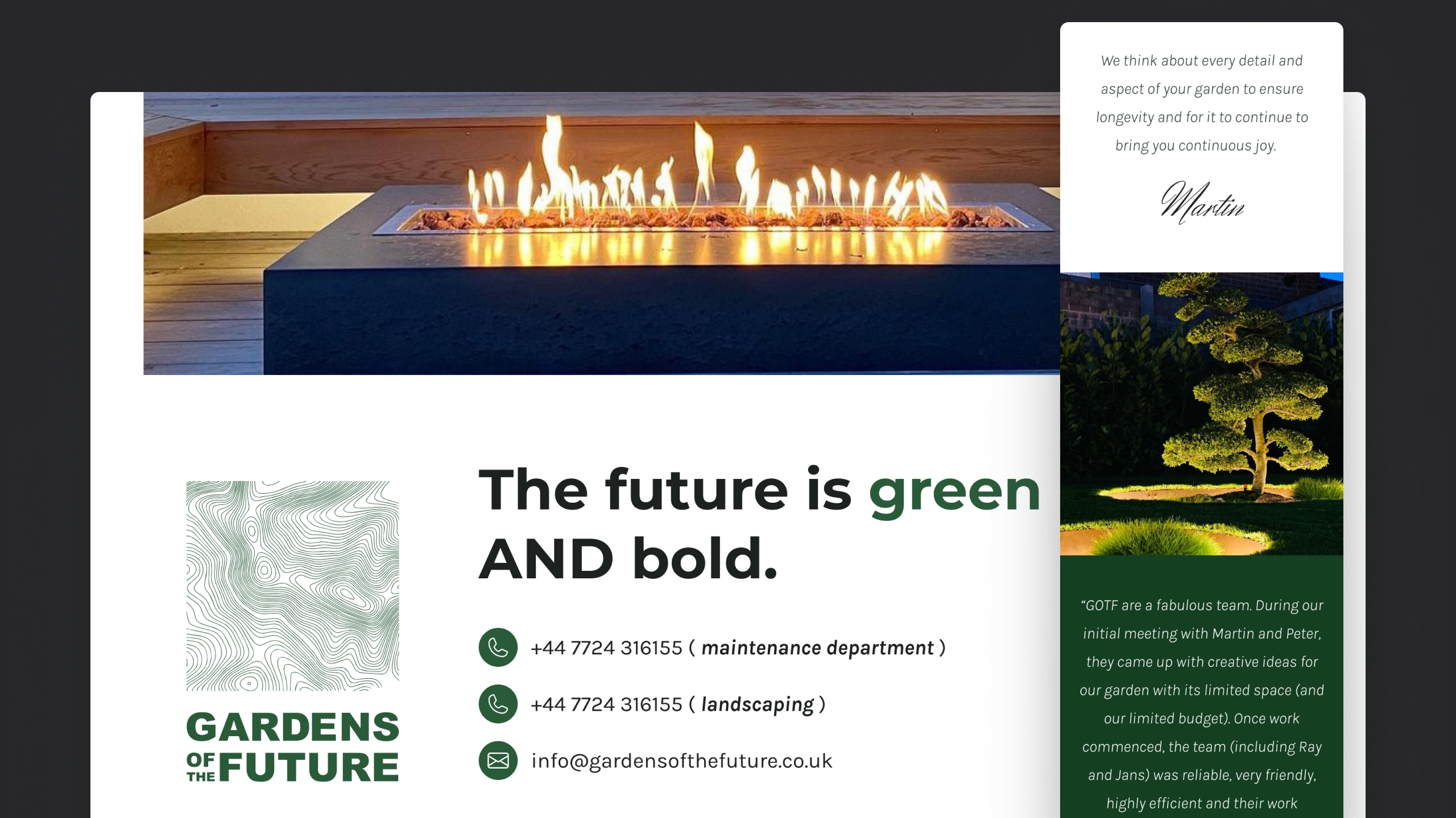 A gardening service provider company, Gardens of the Future, approached to revamp their website and create a more modern and user-friendly online presence. The company provides various gardening services, including landscaping, planting, and maintenance, to residential and commercial clients throughout the UK.